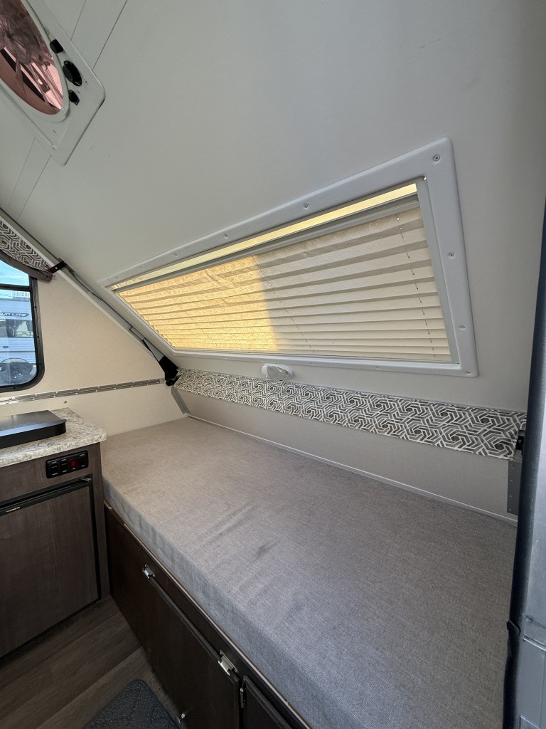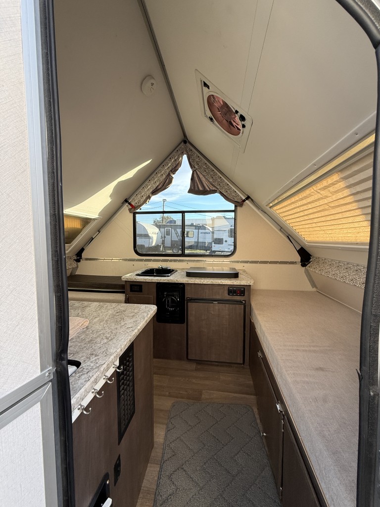 The 2019 A-Liner Ranger 10 is a compact, hard-sided pop-up camper built for simplicity and ease of use. Its A-frame design sets up quickly without the hassle of canvas, giving you solid walls and a cozy interior in minutes. Lightweight and easy to tow, it’s a great option for smaller vehicles while still offering the essentials needed for comfortable weekend trips. The interior layout is straightforward and efficient, making smart use of space without feeling cramped.